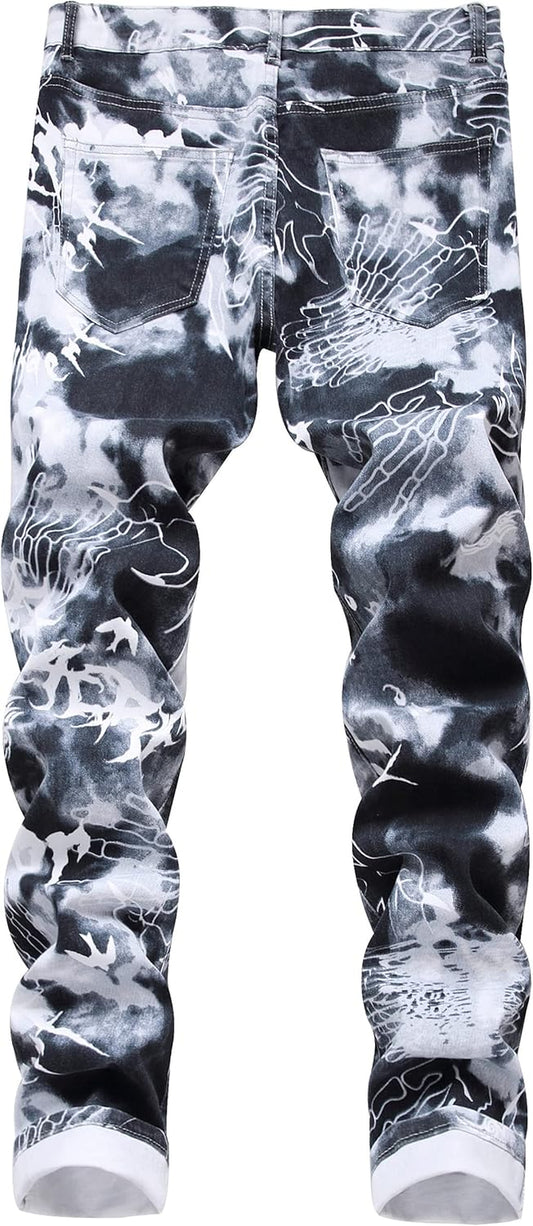 Men'S Skinny Stretch Jeans Fashion Printed Slim Fit Jeans Comfort Flex Waist Casual Pants